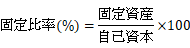 この比率は100%以下ならば自己資本のみで固定資産を賄えているということであり、数値が低いほど安全性が高いということになります。
