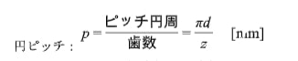 ・円ピッチ:ピッチ円上で計った、隣り合う歯の対応する部分間の距離のこと。